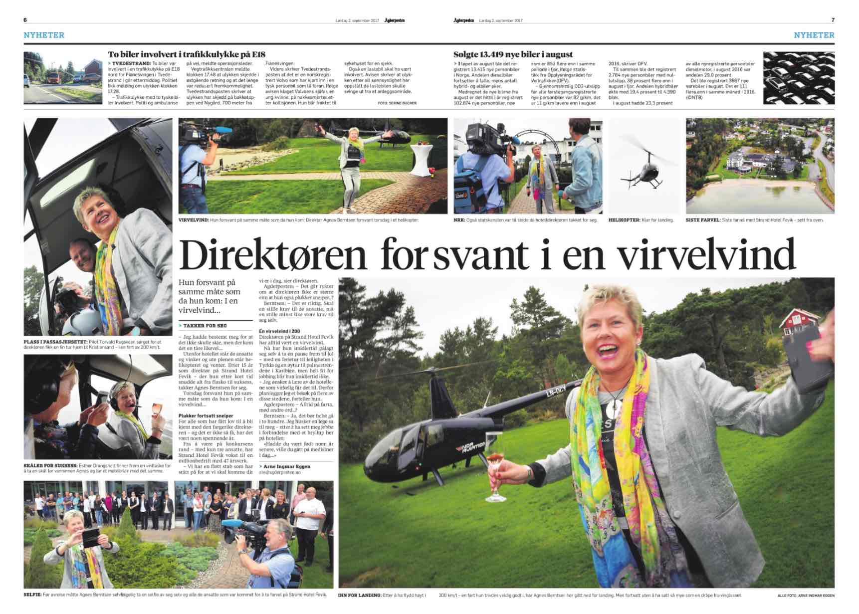 «Hun hadde lyst til å lede et hotell i norgestoppen. Agnes Berntsen fant frem til underskuddsbedriften Strand hotel Fevik. På 14 år gjorde hun gull av gråstein. – Jeg måtte røske tak i alt. Det har vært 14 år med full rulle og bånn gass fra morgen til kveld, forteller en entusiastisk direktør. (Hentet fra NRK Sørlandet)»