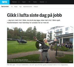 NRK dokumenterte Agnes sin avreise fra Strand Hotel Fevik.